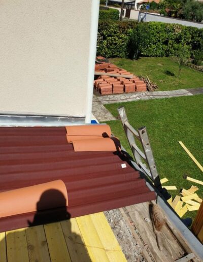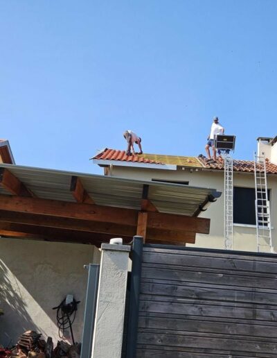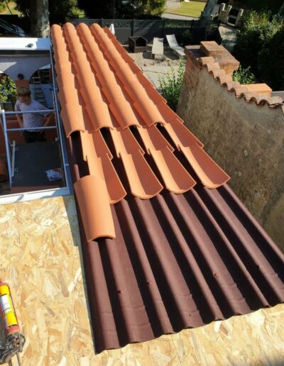 J’interviens pour la pose et la rénovation de tous types de toitures : tuiles, ardoises, zinc ou bac acier.