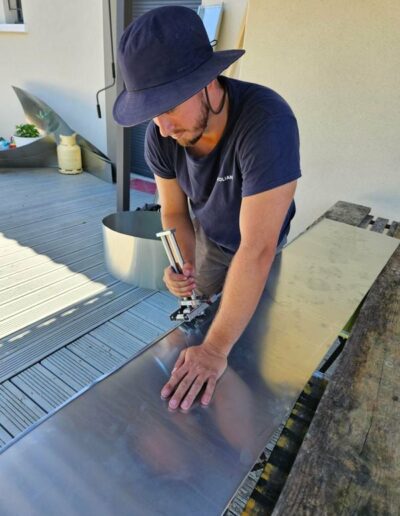 Je réalise vos éléments de zinguerie sur mesure : gouttières, rives, abergements, etc.